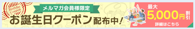 | →お誕生日クーポン | 5,000円 | 誕生日前の月の20日までにメルマガ登録必要 |