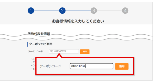 会員登録なしでも使えるクーポンです。予約画面でコードを入力するだけ。