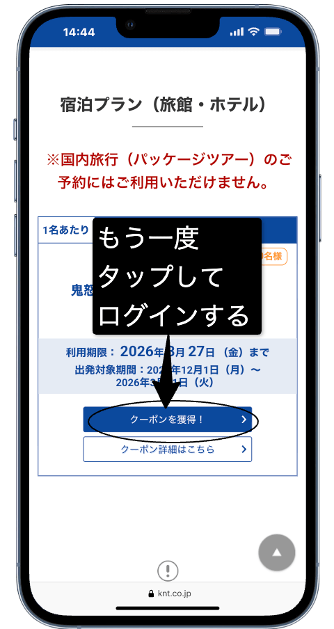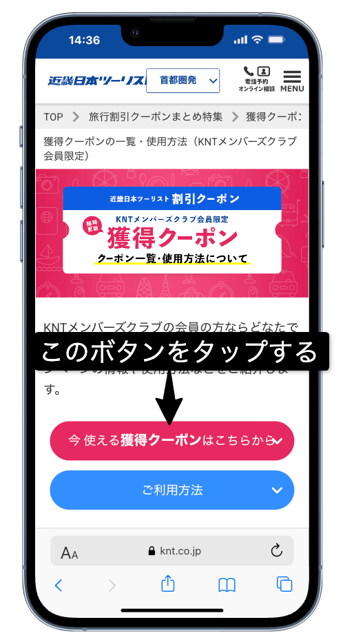 - 近畿日本ツーリストの無料「KNTメンバーズクラブ」に新規登録すると獲得できる会員限定クーポンです。ボタンをタップするだけで決済画面で使って割引を受けられます。