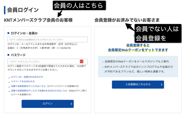 - ☑ KNTメンバーズクラブにログインしてポイントを貯める