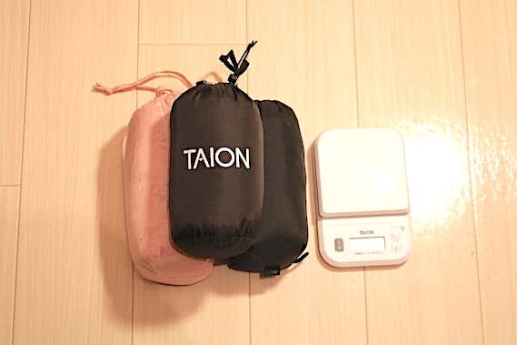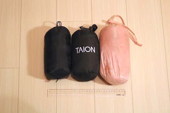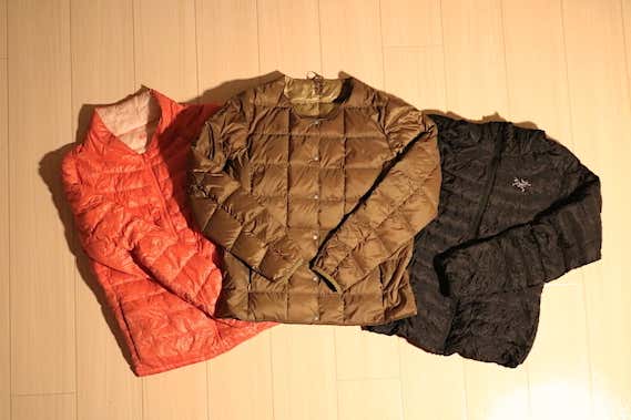 どれだけ人気だと言われても、実際に現物を手に取らなければ実力は分かりません。ということで、ファストファッションブランド製(左)とTAION製(中央)、アウトドアブランド製(右)の3種類で比較検証してみました。