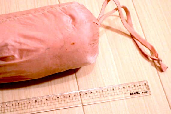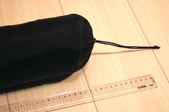結果は約21.cm。重量こそ軽かったものの、少しかさばってしまいそうです。一方で圧縮すればまだ小さくなりそうだったため、ジップロックで圧縮するという手もありますね。
