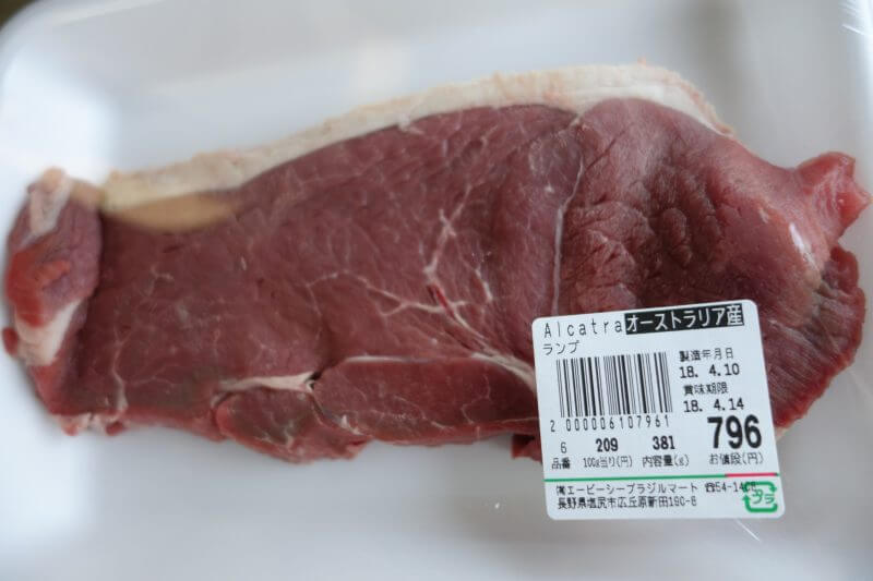 ランプは腰からお尻にかけてのももの一部です。基本的には赤身で脂分は少なめ。
