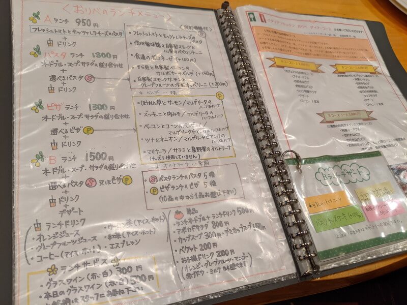松本市「イタリアンキッチンおりべ」のメニュー