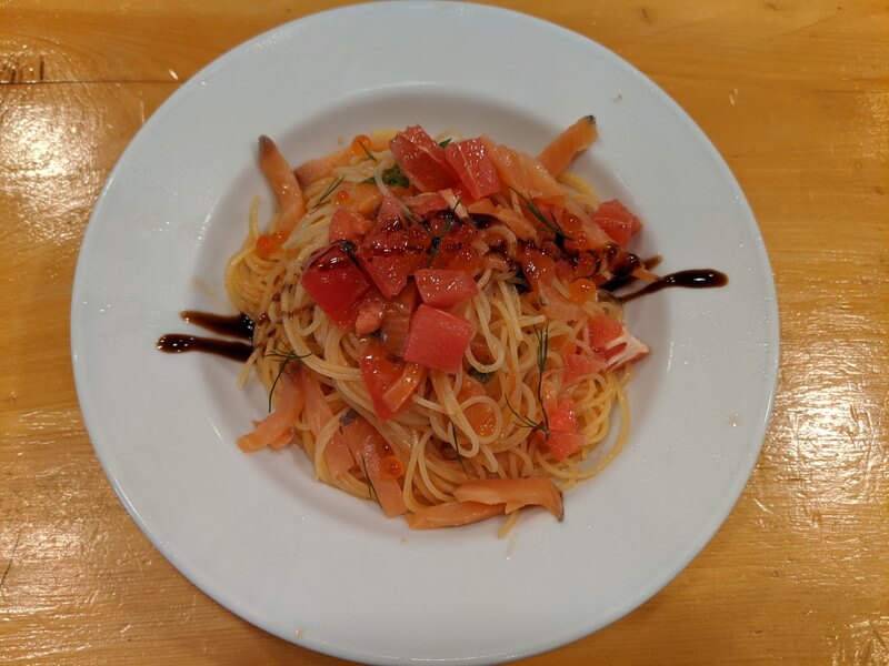 冷たくて少し食感強めのカッペリーニとサーモンの薫香、いくらの塩気、グレープフルーツとバルサミコ酢の爽やかな酸味がそれぞれ主張しすぎずに見事に1つの作品に集結。