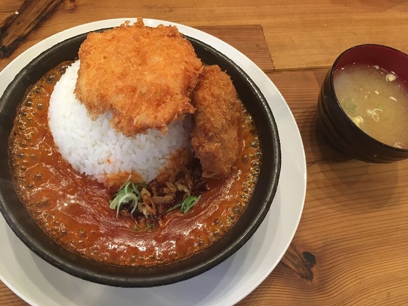 さらにはトッピングで選んだチキンカツとメンチカツがこれでもかと言わんばかりに載せられております。