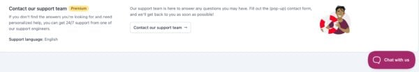 In your WordPress Dashboard, under the Yoast SEO menu, you can find the Support page. On this page, you can find Frequently asked questions and Additional resources. You can also contact the Support team directly by clicking Contact our support team at the bottom of the page, or clicking Chat with us to start a live chat.