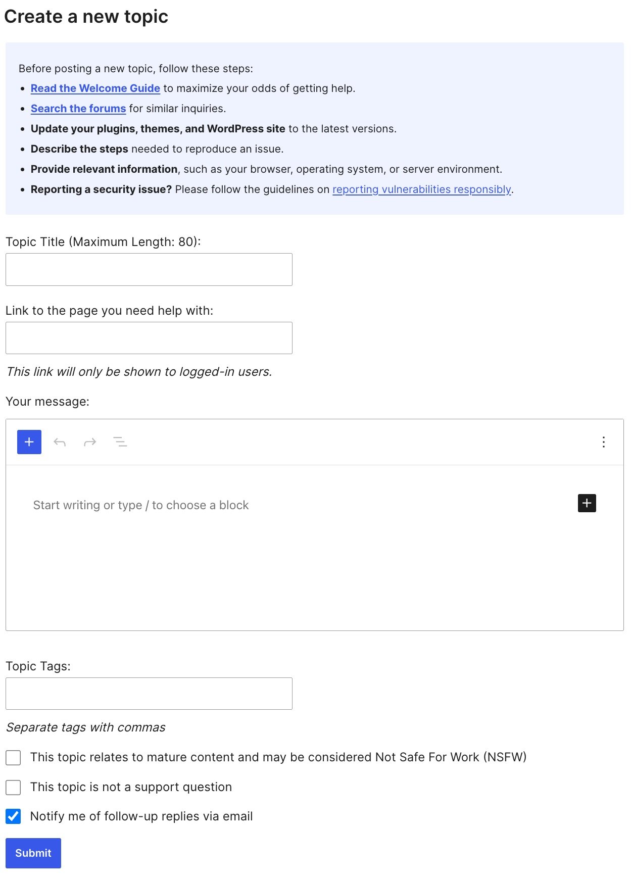 - Fill in the form to create a new topic