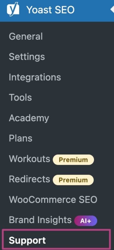 Support page in Yoast SEO