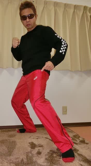アシックスの赤いシャカパン(ウインドブレーカー)