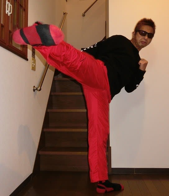 家の中ですがキックの練習!