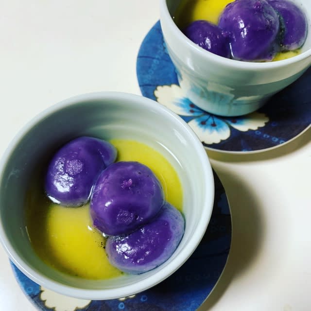 紫いもの湯圓を乗せて