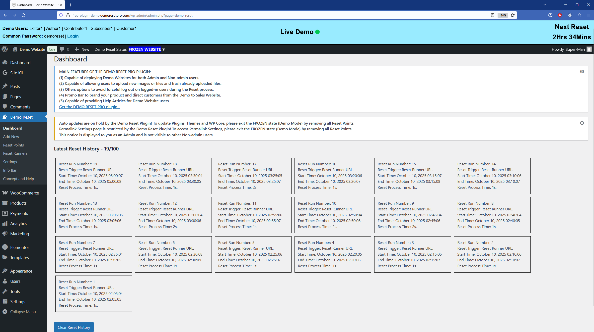 Demo Reset Free Plugin