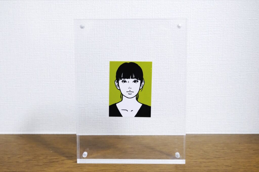 こちらはKYNEさんの展覧会の中で配布していたステッカーになります。DM以外にも、ステッカーなどの小さいサイズでも綺麗にディスプレイできています。