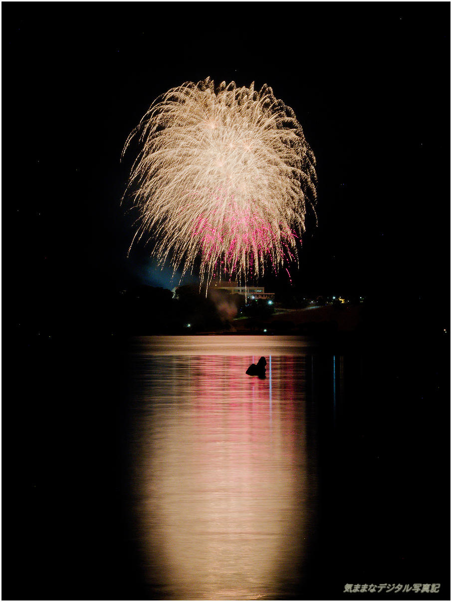 私は、ここの花火は今年が初めてで安全を見てちょっと広く撮り過ぎたのでトリミングしています。