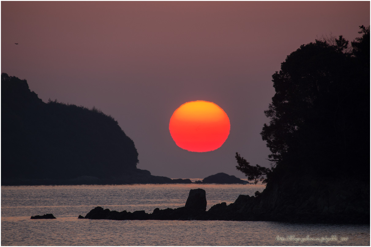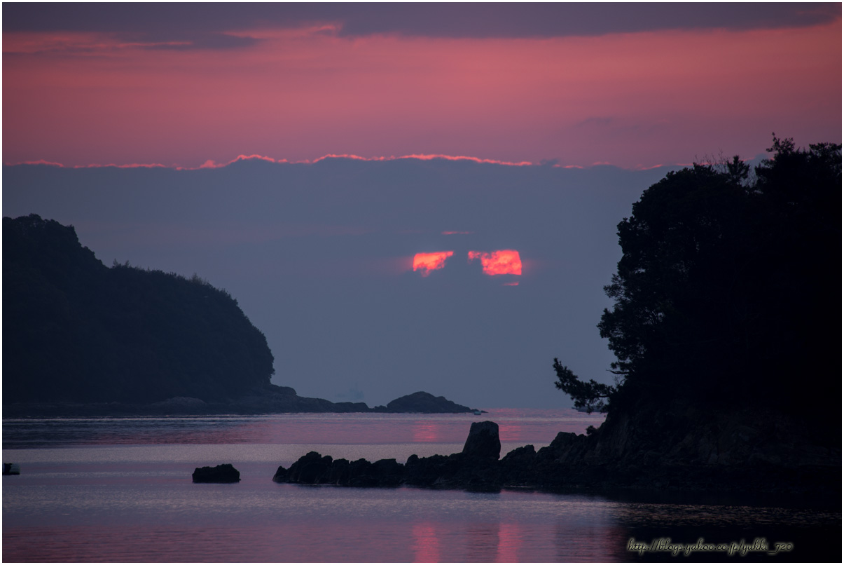 期間限定で岬と島が接近したその間からの日の出狙いですが、やはり雲がありました。