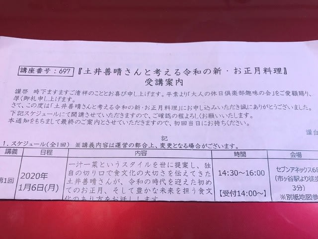 「土井善晴さんと考える令和の新・お正月料理」の講話を聴くためです♪