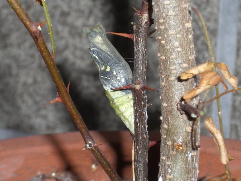 安全と思う場所を探してサナギになる♪