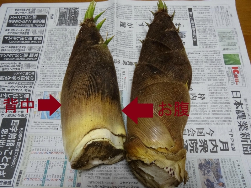 数日前の新聞で「筍」には「お腹」と「背中」があることを知りました♪
