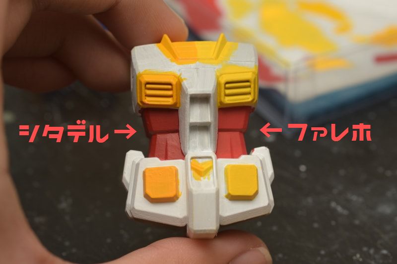ホワイト、イエロー以外の色は本当に隠蔽力も高く、筆ムラも出にくく乾燥も早いのでとても使いやすかったです。なので、この実験結果を踏まえて、水性塗料で塗装する時は「ホワイト、イエローはシタデル。それ以外はファレホを使う」というのもありかな、とか考えたりもしました。