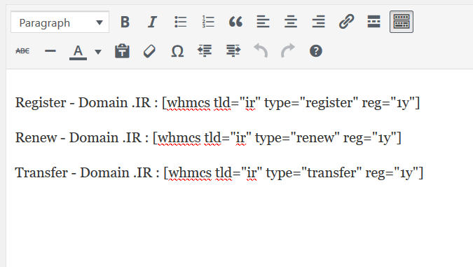 - Change type value in shortcode with register, renew, transfer .
