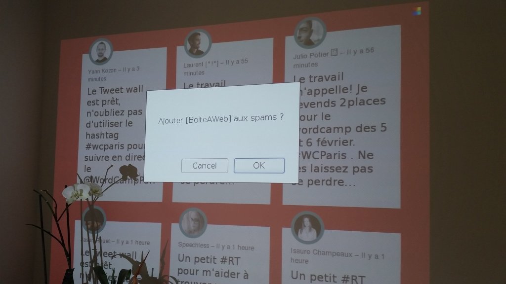 The plugin on the computer used to project the twitter wall ; on this interface the admin can report some tweets as spam.