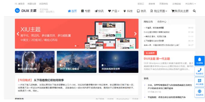 5、DUX大前端的主题(适合个人/企业CMS建站)