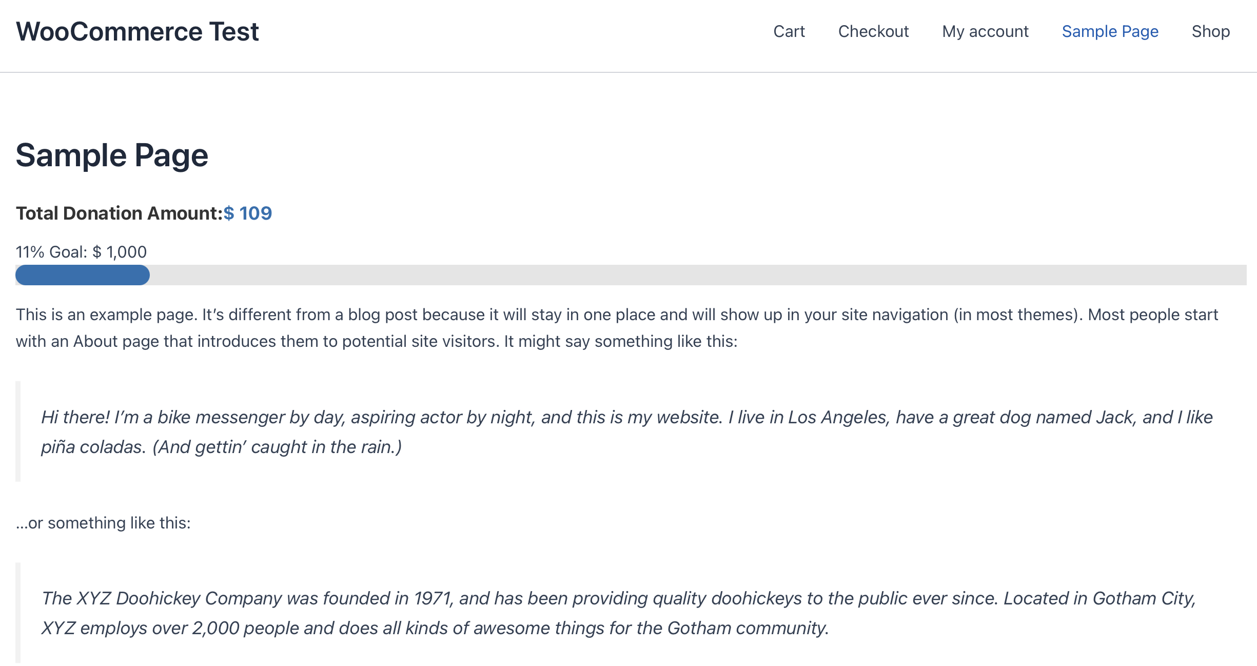 3. Progress Bar: Shows progress toward a goal amount.You can also customize the prefix and suffix text, and add custom CSS.