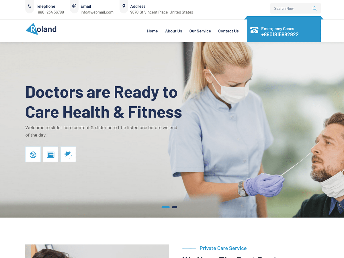 Roland is a Modern Responsive Medical, Clinic, Healthcare & Doctor WordPress Theme. Roland is the perfect theme for you to build hospital, doctor or any medical and health related websites. The design and layout look so sleek and very professional to represent your medical business. We create pro version with lot’s of features & pages. Here is the pro version : https://codeglim.com/product/roland-pro