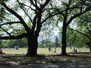 GWと言うこともあり予想以上に人がいましたね。見渡すとカップルや家族連れに紛れ最近流行らしい女子だけのピクニック(キャンプ女子?)も結構いらっしゃる。ZUYAさんたちは入園前に弁当を購入し、芝生にのんびり座りランチ。有りがたいことに 『 ペット 』 と 『 酔っ払い 』 は入園不可なので、何の躊躇いもなく芝生に寝転ぶことが出来る。とても大都市・東京のど真ん中だとは思えない。もちろん見る方向によっては“その現実”を知ることにはなるのだが、なかなか立派な公園である